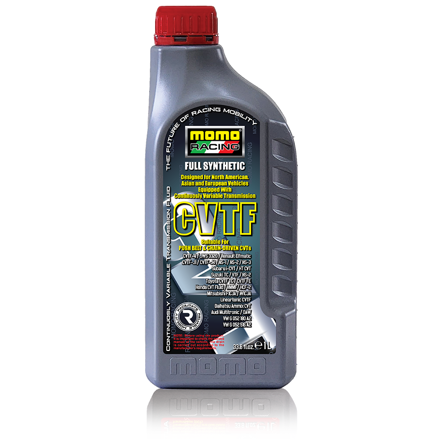 MOMO RACING CVTF is a highly advanced, full synthetic, long drain, automatic transmission fluid manufactured with advanced synthetic base oils and utilising state of the art additive technology for applications in many modern types of Continuously Variable Transmissions (CVT). It is able to withstand critical loads with very wide temperature range and also has increased operational resources. Its new and improved formulation means more applications are now possible.