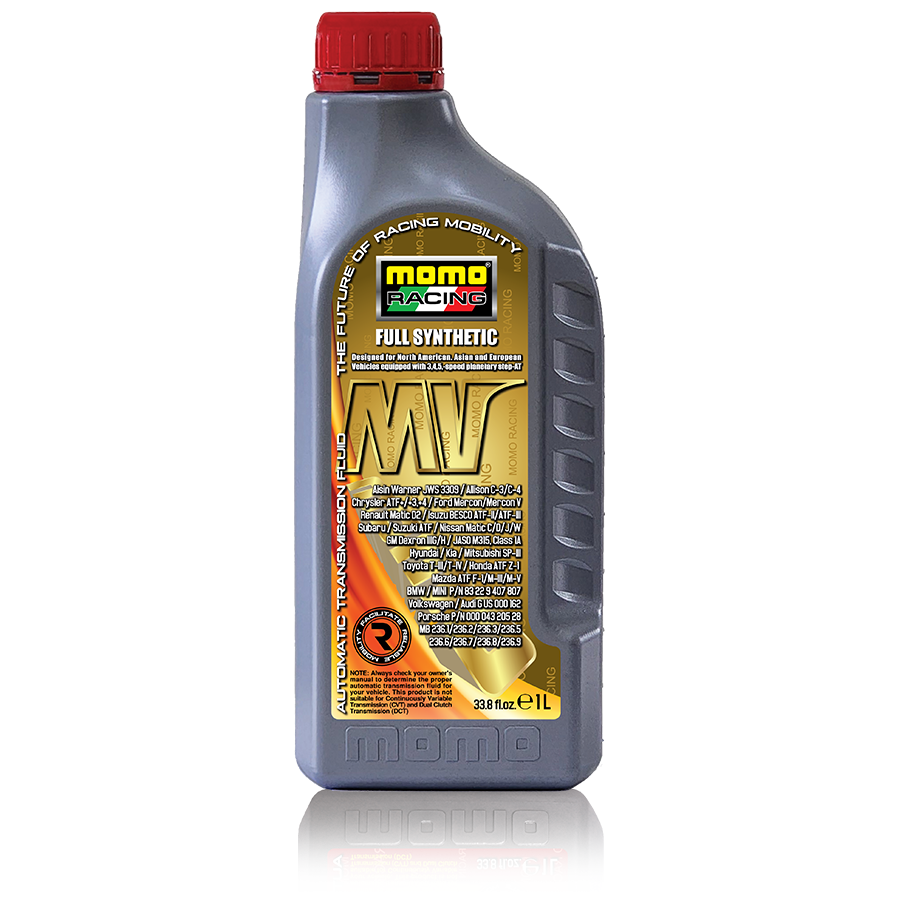 MOMO RACING MV is a full synthetic, highly shear stable, multi vehicle, red coloured, automatic transmission fluid that exceeds the requirements of Ford Mercon®V and GM Dexron®IIIH as well as many other manufacturers requirements. It is an advanced formula designed for optimum performance. ATF MV is particularly suitable for long drain use in 4, 5 & 6 + speed automatic transmissions in passenger cars, 4WD’ and light commercial vehicles. ATF MV Multi-Vehicle can be used in Toyota vehicles that specify Type T-II, Type T-III and Type T-IV, as well as in Nissan vehicles where Nissan Nissanmatic D, J, K & W are required. Suitable for use in Mitsubishi where SP2/SP3/PA is specified as well as in selected Honda, Hyundai, Subaru & Kia motor vehicles including applications where low viscosity fluids are required. ATF MV Multi-Vehicle can be used in GM Holden Astra, Barina, Zafira and Vectra 4 and 5 speed automatic transmissions. It can also be used in Chrysler / Dodge & Jeep automatic transmissions where ATF+3® or ATF+4® fluids are required. It can also be used where GM DEXRON® II and III fluids are recommended by the manufacturer.