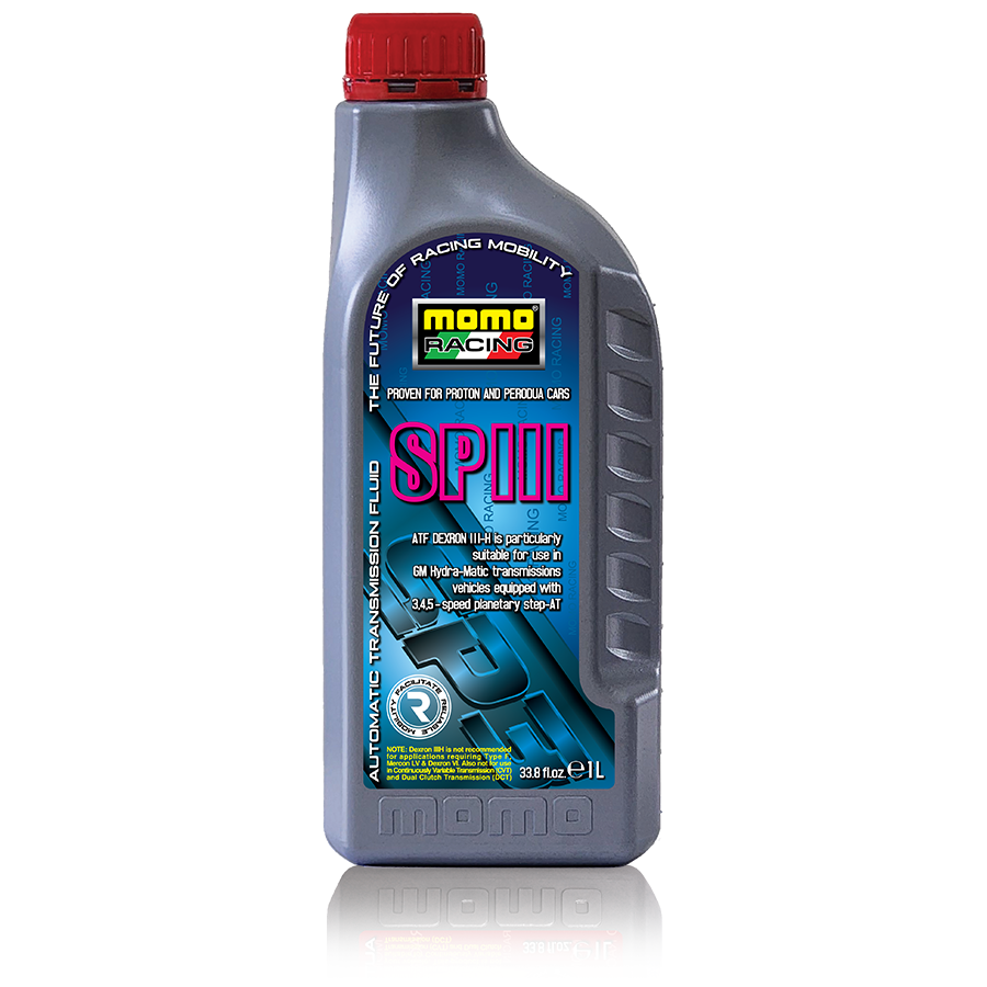 MOMO RACING ATF SP-III is an automatic transmission fluid specifically developed to meet the requirements for the ATF SP-III specification that is the most common ATF used for Proton and Perodua vehicles automatic transmissions. ATF SP-III is formulated with selected high viscosity index premium quality hydrotreated base stocks and latest additive technology provide the best friction properties during gear change, perfect low-temperature properties, anti-oxidation and chemical stability during the whole operation life. ATF SPIII is suitable for use where GM Dexron® III-H Automatic transmission that requires Dexron® III, Ford Mercon® and Allison C-4 performance Mitsubishi, Kia, and Hyundai automatic transmission SP-II/III vehicles using 4 speed transmission (prior 2003)