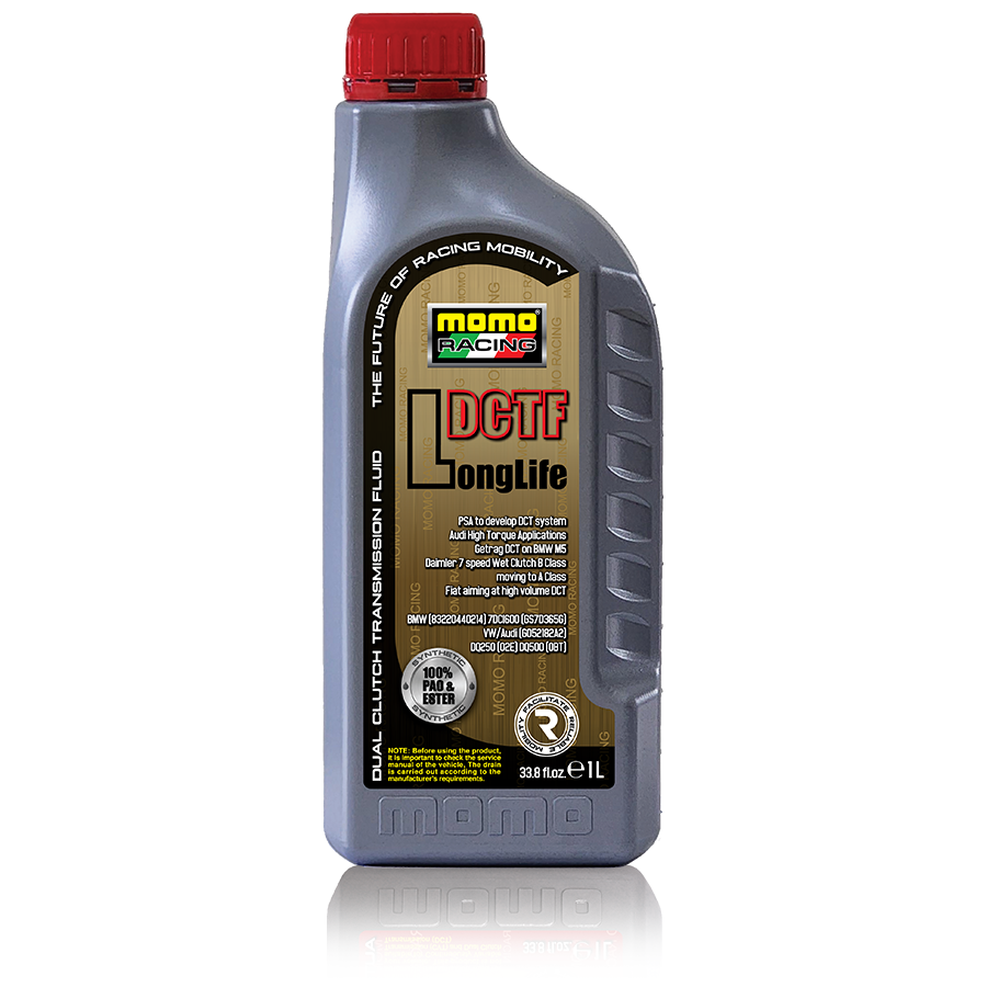 MOMO RACING DCTF is a highly advanced, full synthetic, multi vehicle, dual clutch transmission (DCT) fluid suitable for DCTs that use a wet clutch system. It is manufactured with advanced synthetic Group IV Poly Alpha Olefin (PAO) and Group V Alkylated Naphthalene (AN) with a special additive and inhibition, which guarantee a perfect function of the latest additive technology for applications in many modern types of wet DCT transmissions. DCT Fluid is designed for use in passenger cars, 4WD and, light commercial vehicles fitted with 6 or 7 speed DCT transmissions that use a wet clutch system. It provides anti-shudder performance, smooth shifting and excellent transmission response due to its optimized friction characteristics, resulting in fuel economy benefits and wear protection of the transmission internals.